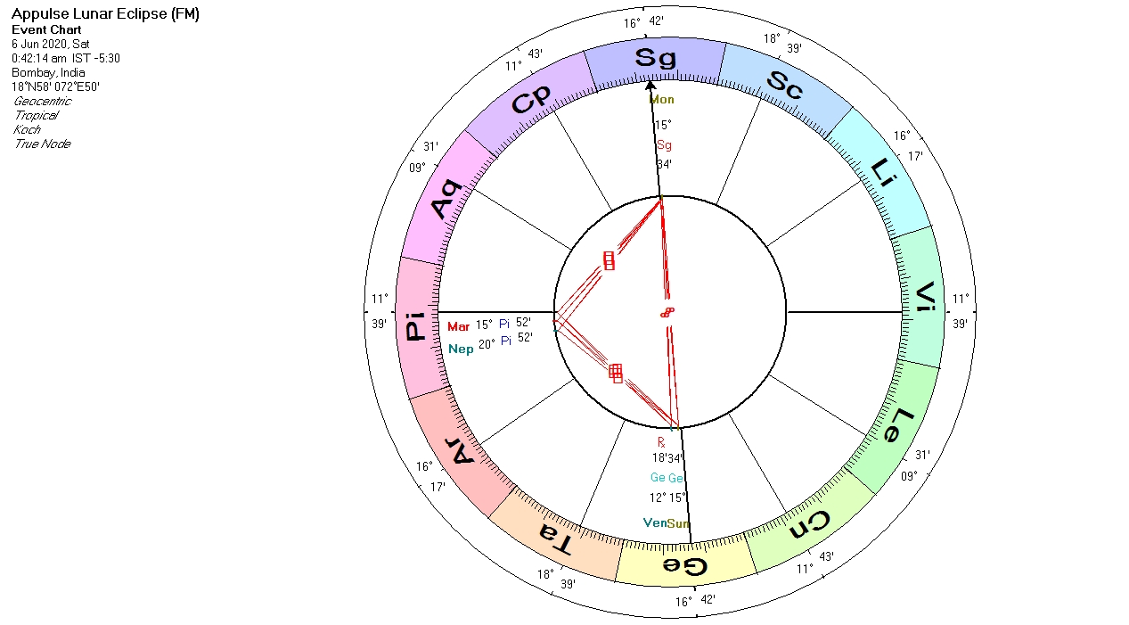 lunar eclipse of June 6, 2020 is prominently placed on the meridian and square