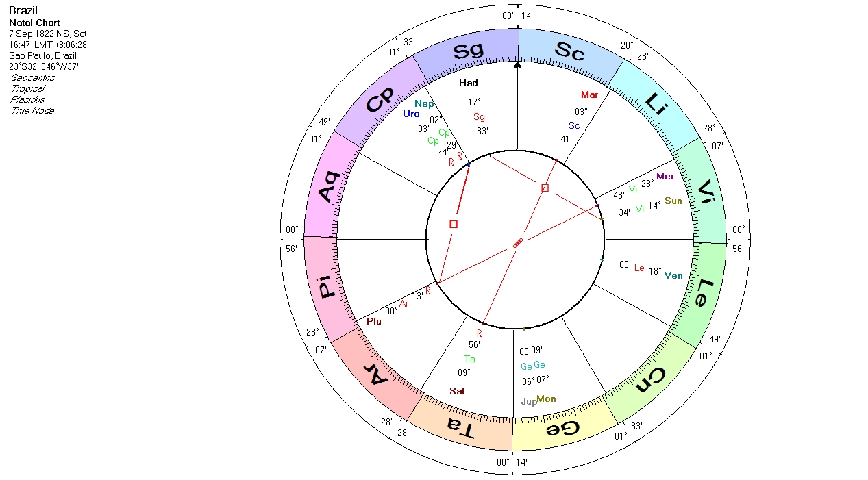 This “suppression” of energies may be a collective phenomenon. For example the current major direction in the national chart of Brazil [7 Sep. 1822; 16:47 LMT; Sao Paulo; Brazil] is: